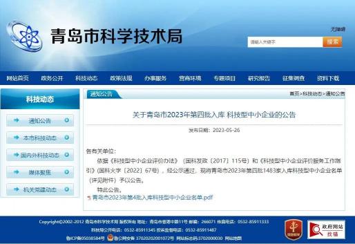近日,青岛市科学技术局发布《关于青岛市2023年第四批入库科技型中小企业的公告》,青岛同人建筑防火有限公司成功入选。